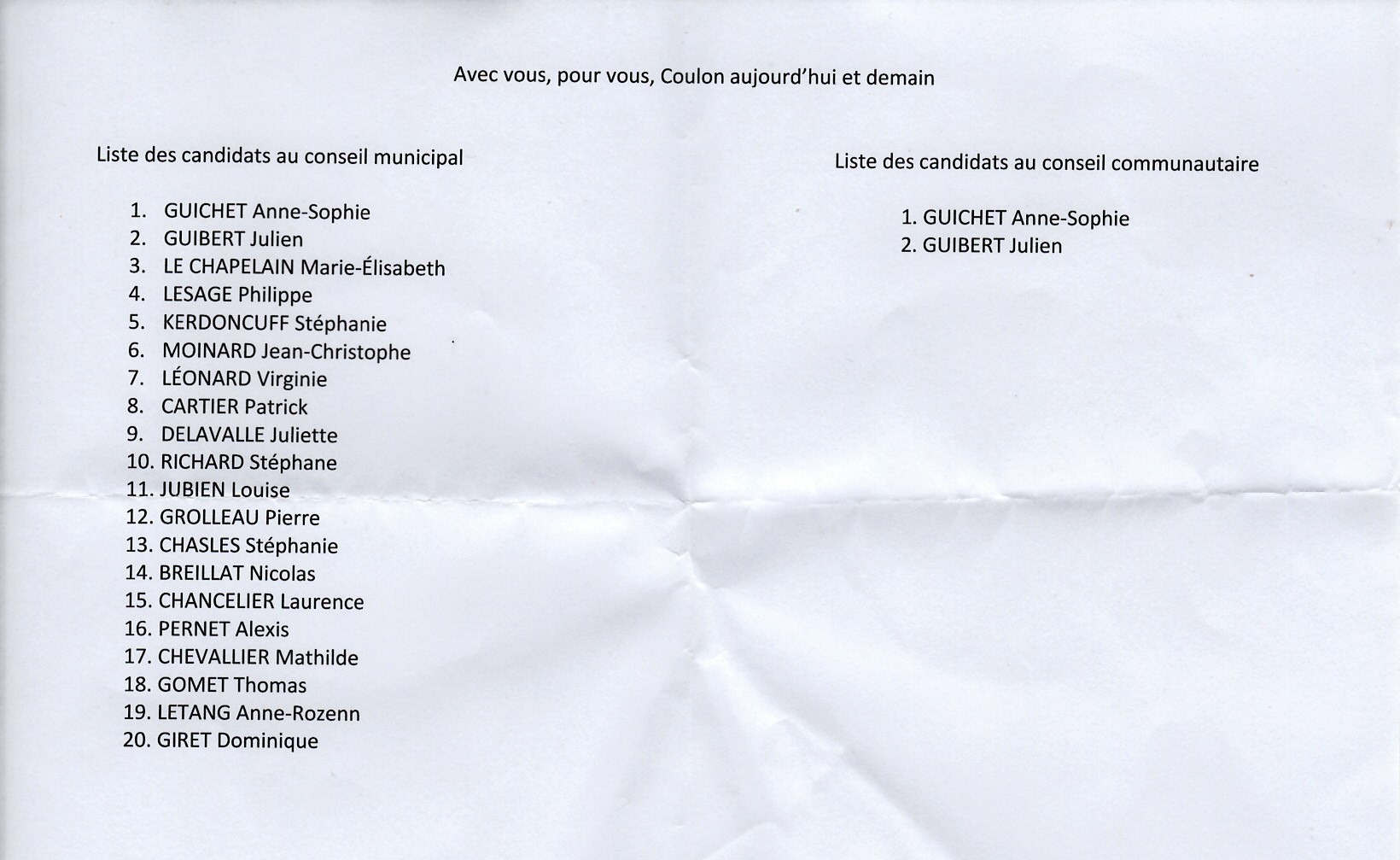 Le message de la commune de Coulon (79) en cette fin d’année 2020 Photo Gilles PETIT