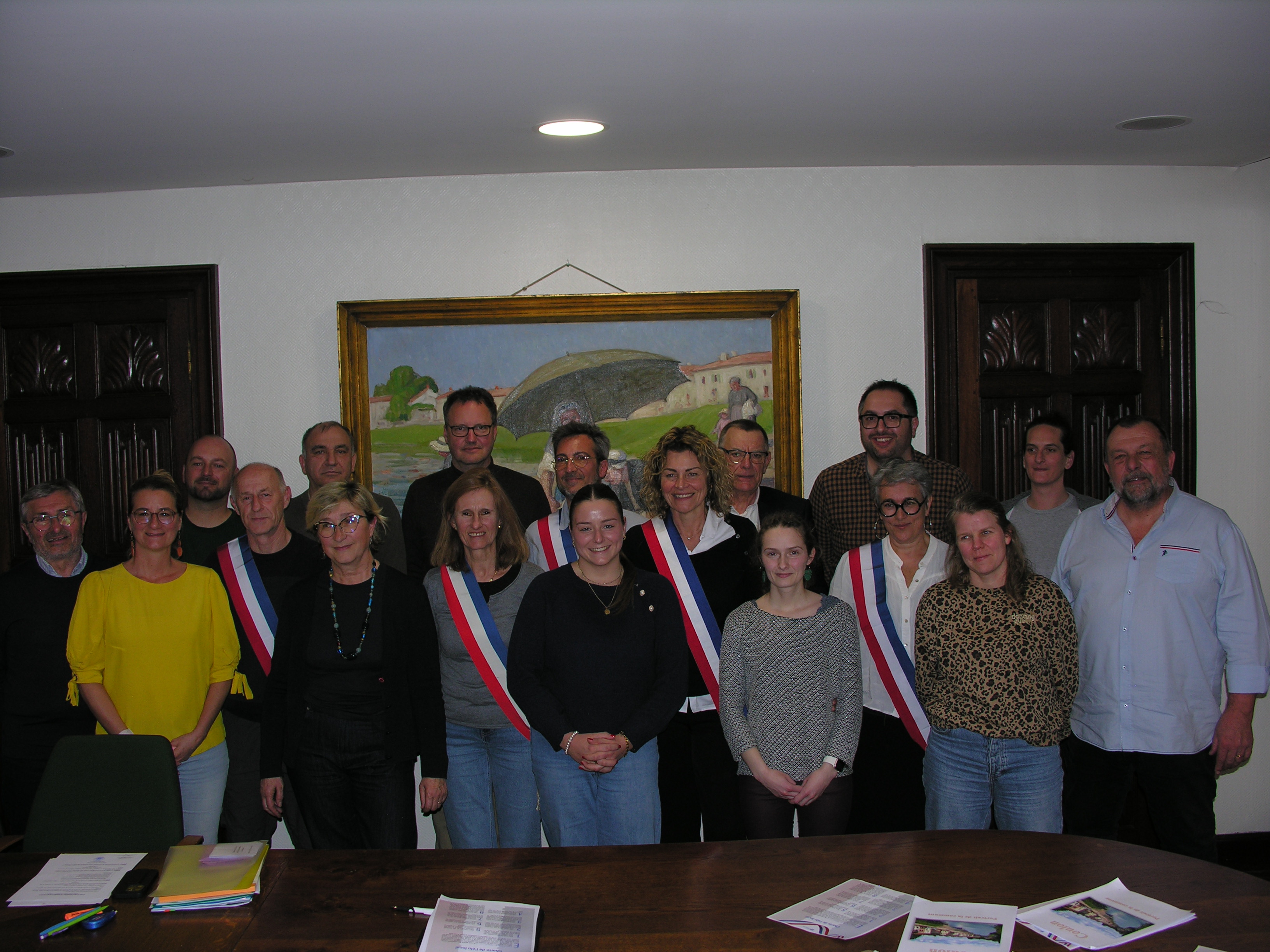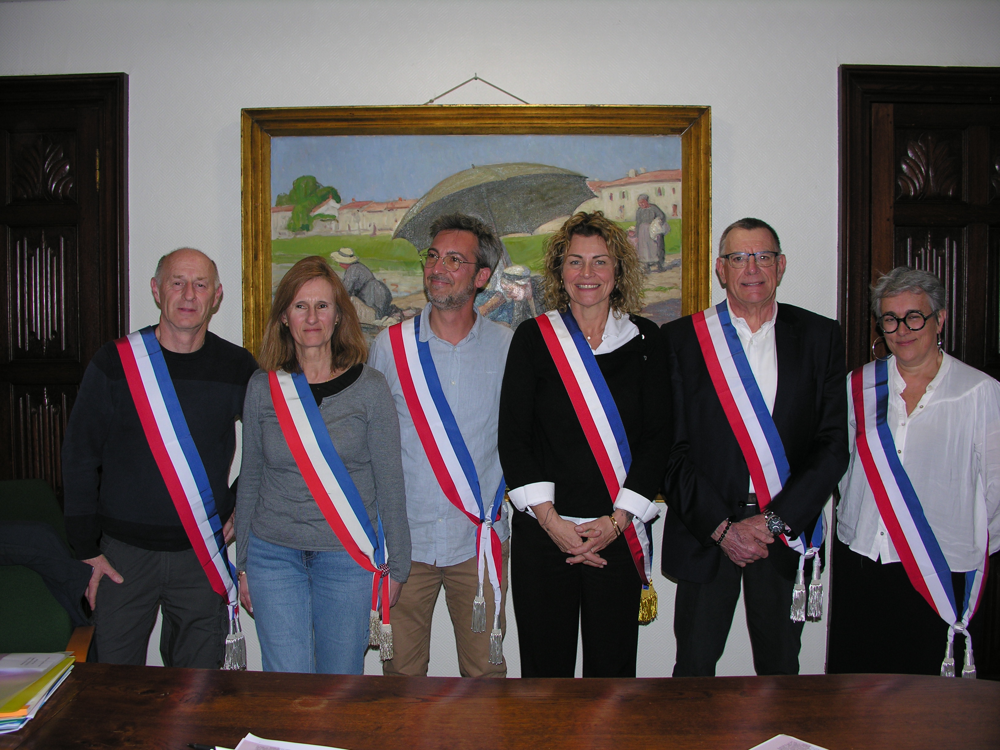 Étaient également présents (de gauche à droite) MM. Jean Richer, urbaniste, géographe et Architecte des Bâtiments de France (ABF) en Deux-Sèvres auprès de la Direction Régionale des Affaires Culturelles (DRAC) Nouvelle-Aquitaine, et Sylvain Provost, inspecteur des sites à la DREAL (Direction Régionale de l’Environnement, de l’Aménagement et du Logement). On notera que l’ABF intervient car le village est compris dans le périmètre architectural de l’église de la Sainte-Trinité, alors que la DREAL intervient car les quais (et uniquement les quais, pas les bâtiments riverains) sont inclus dans le site classé qu’est le Marais Poitevin.