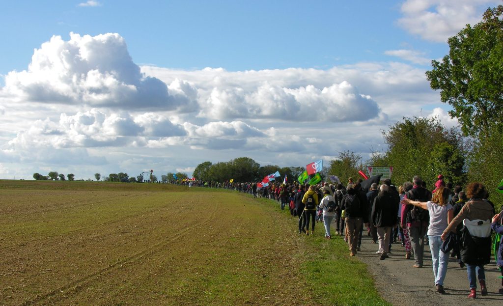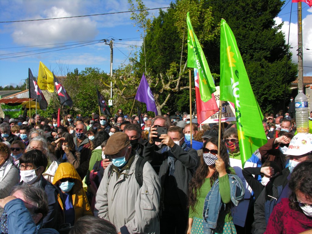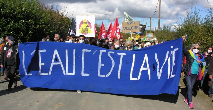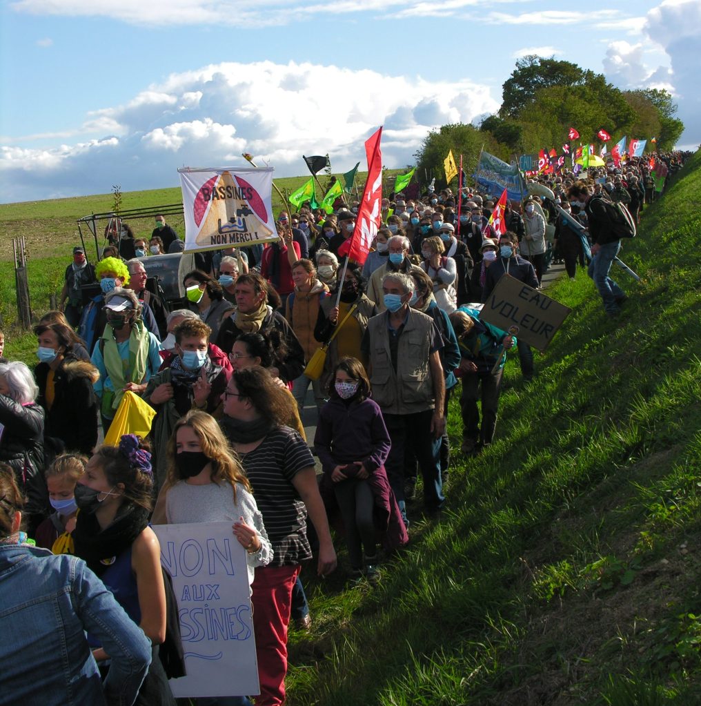 Organisée à Epannes (Deux-Sèvres) dimanche 11 octobre 2020 par le collectif Bassines Non Merci (BNM), la manifestation contre les projets de 16 retenues d’eau, destinées à l’irrigation, a rassemblé près de 3 000 personnes menées par des politiques dont José Bové, Jean-Luc Mélenchon, Yannick Jadot, Benoit Biteau, Nicolas Thierry, Philippe Poutou, Dominique Mallet . . .