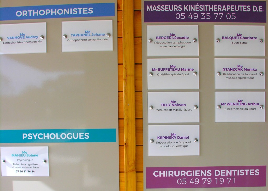 La Maison de Santé Pluridisciplinaire accueille cinq cabinets médicaux, avec une salle d’urgence ; trois cabinets dentaires avec une salle de chirurgie ; six kinésithérapeutes ; cinq infirmiers ; une infirmière IDE-ASALEE (Association nationale qui embauche des salariés infirmières de santé publique, mis à disposition de généralistes le souhaitant) ; deux psychologues ; et trois orthophonistes. Pour la plupart déjà présents sur les deux communes.