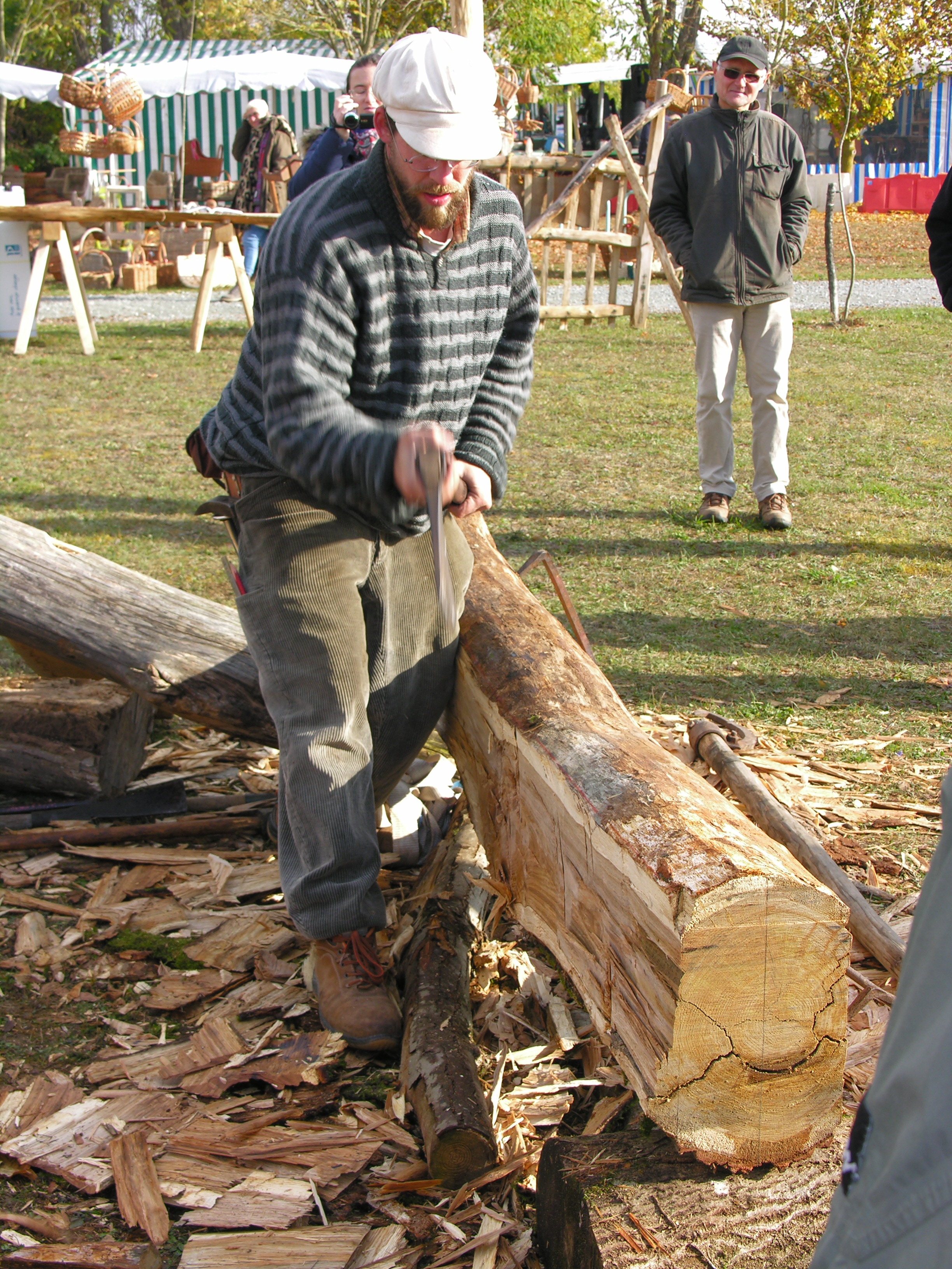 Pour la première fois, le public a pu assister à une démonstration de coupe de bois telle que les anciens la pratiquaient.