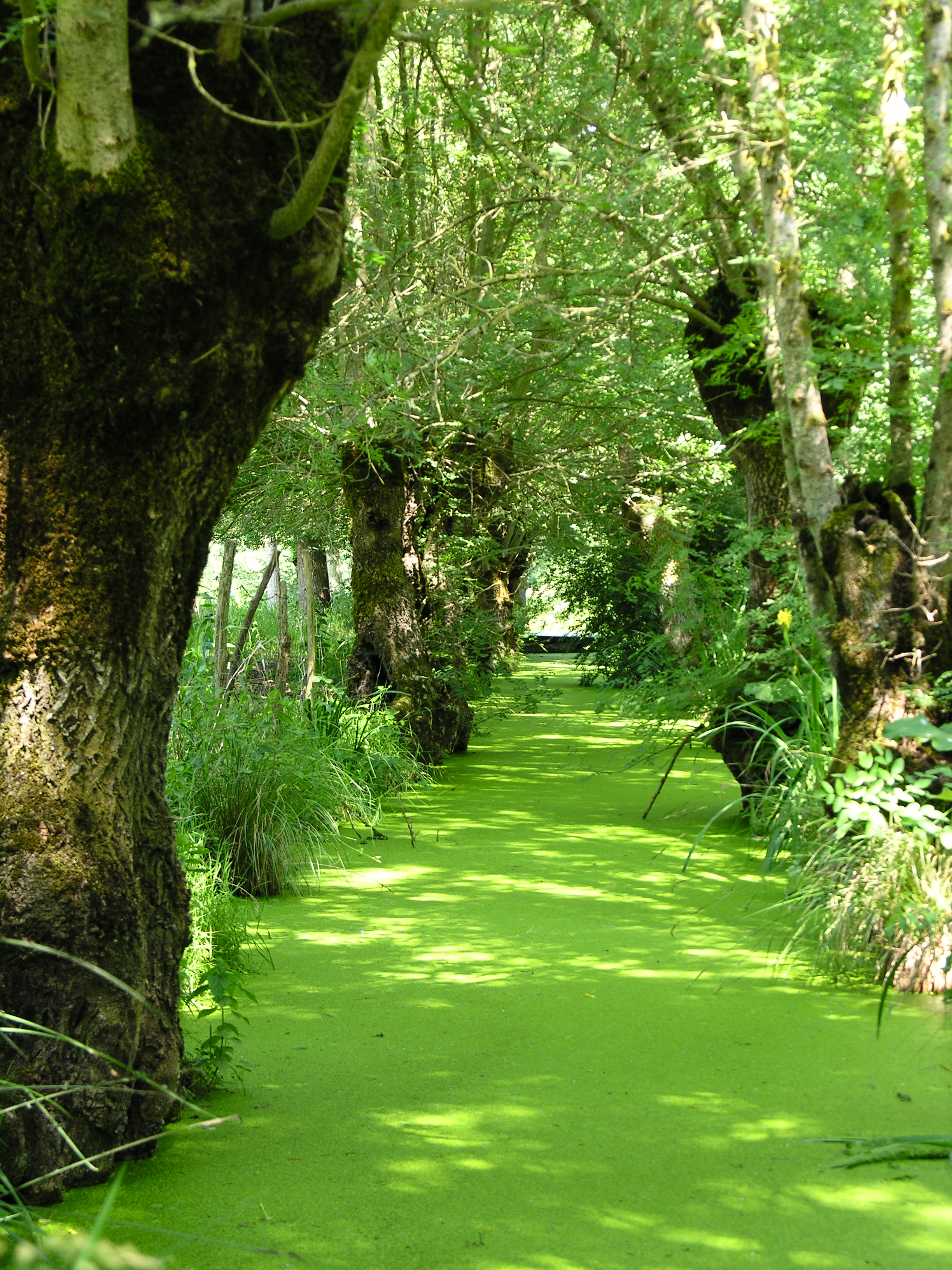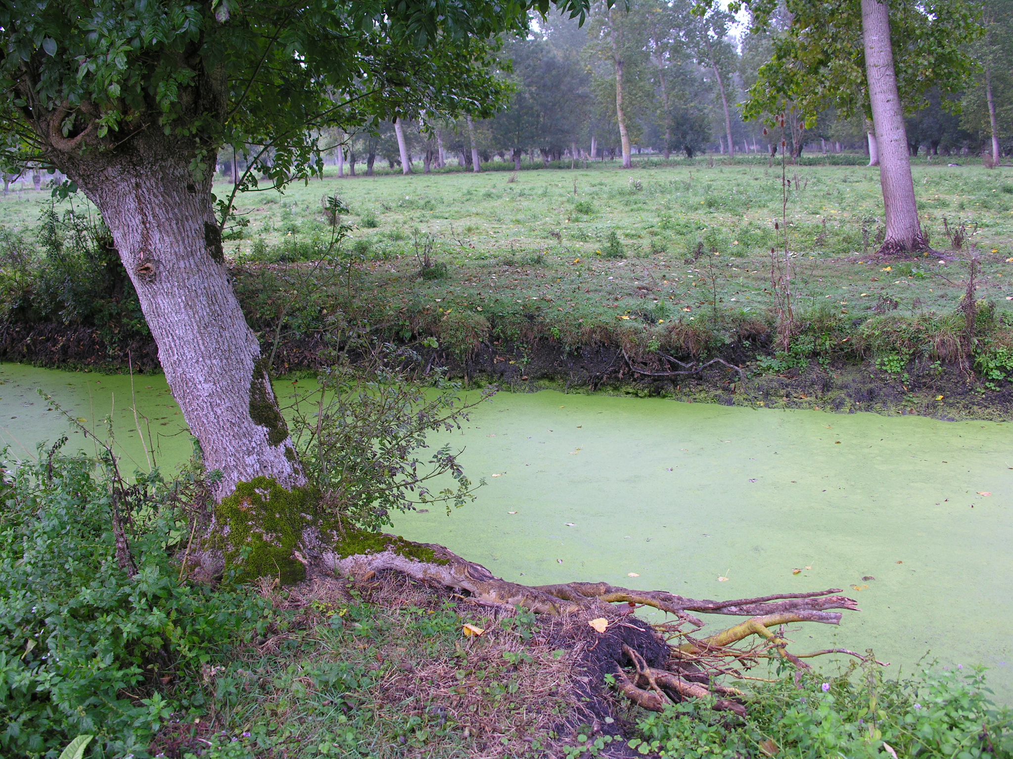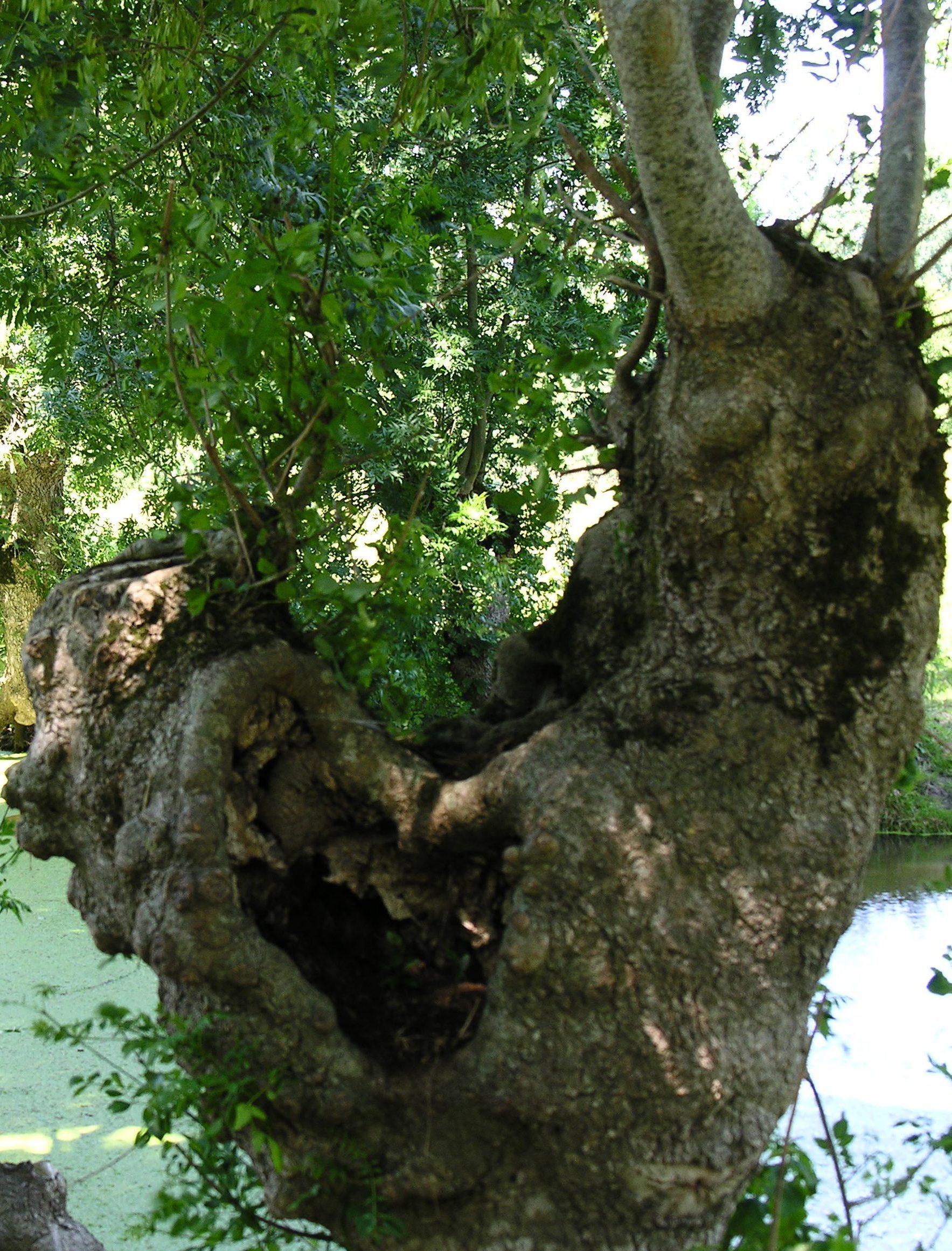 Avec le peuplier, le frêne est l’arbre emblématique du Marais Poitevin, en particulier quand il est taillé en têtard. Les anciens ont introduit le frêne, une essence à pousse rapide qui produit d’abord un excellent bois de chauffage, mais aussi abrite les animaux, et surtout, par la densité de son système racinaire, fixe les bords des berges, évitant ainsi les effondrements dits « naturels ».