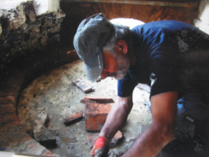 « C’était en friche, il y avait des lierres partout. Il a fallu débroussailler, trier et retailler certaines pierres. L’arrière du four était complètement écroulé, il restait juste la partie cheminée. J’ai refait l’intérieur du four. Il n’y avait plus de portes, j’ai refait la porte ; il n’y avait plus de toit, j’ai refait une pente. En fait, j’ai tout refait ! » résume ainsi M. Roger Bodet au sujet de la restauration du four à pain de la rue du Port Musqué à Magné (Deux-Sèvres).