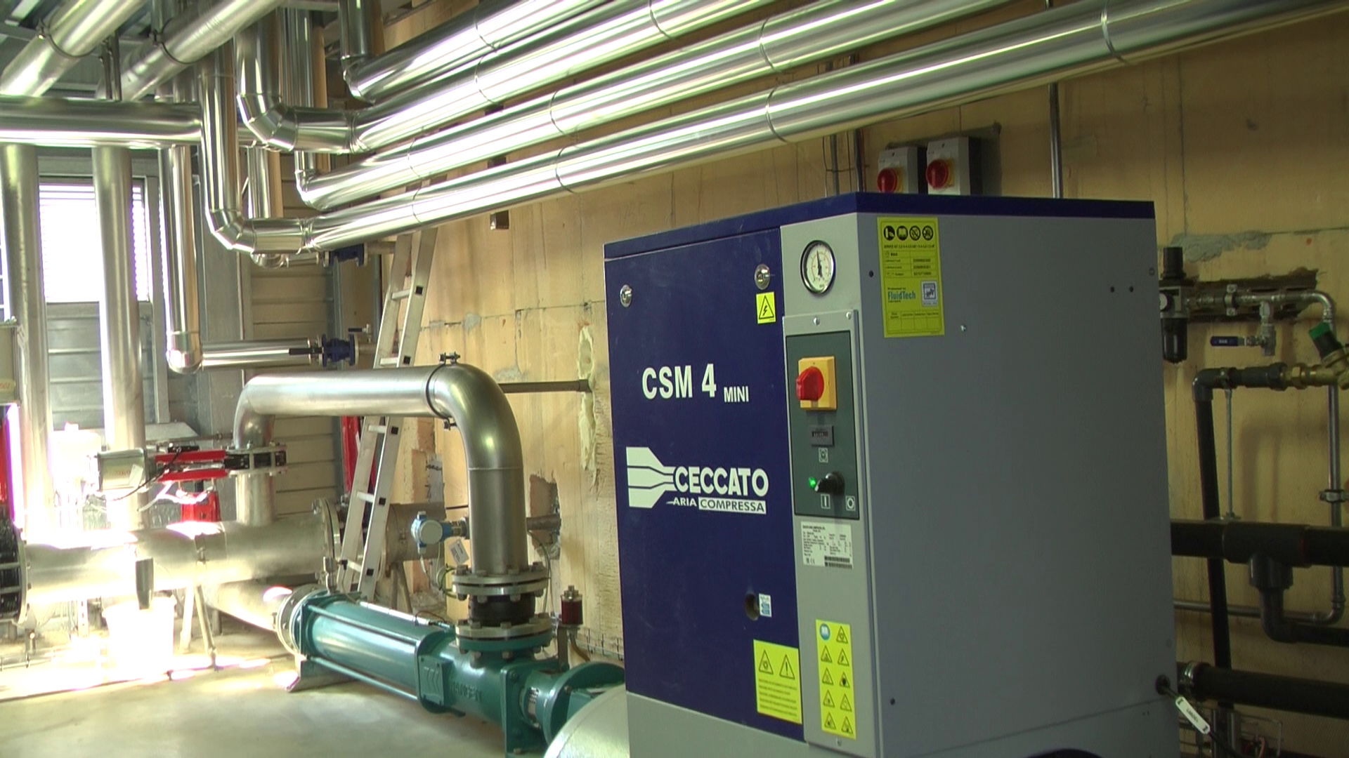 Alimenté par le Biogaz émanant des digesteurs, le cogénérateur produit de l’électricité, distribue une eau de chauffage qui sera bientôt dirigée vers la piscine, le collège, les écoles et la mairie du proche village de Mauzé-sur-Le-Mignon. L’alimentation en électricité interne à l’unité de méthanisation est fournie par les capteurs solaires qui couvrent le bâtiment de stockage des intrants. Image Capt’Action79