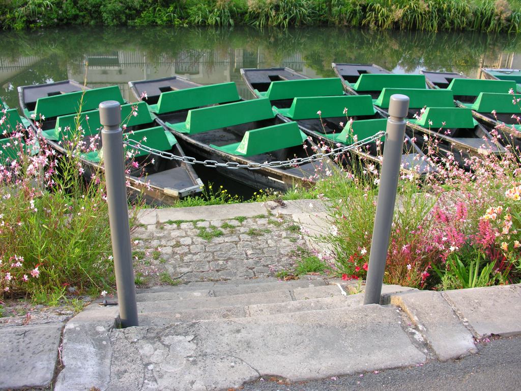 Les quais Louis-Tardy accueillent l’essentiel du flux de visiteurs estivaux, à pied ou à vélo. Les voitures ne peuvent pas cohabiter, évidemment. Celles, essentiellement coulonnaises, qui se retrouvent emprisonnées, entre les rues du Château et du Port-aux-Moules, n’ont qu’une seule solution : fendre la foule pour rejoindre la seule sortie possible la rue du Port-aux-Moules (les autres sorties sont enchaînées et cadenassées. Voir le diaporama ci-dessous). Parallèlement, sur cette voie, la municipalité a fait très fort, sous prétexte de sécurité, ou de pandémie, semble-t-il : elle a condamné les accès à la Sèvre Niortaise pour tous au profit des entreprises privées de batellerie. Des potelets équipés de chaînes barrent les descentes d’escaliers vers l’eau et des barrières métalliques fixes ferment le lavoir ancestral et les petits quais du port de la Coutume. Pour le tourisme.
