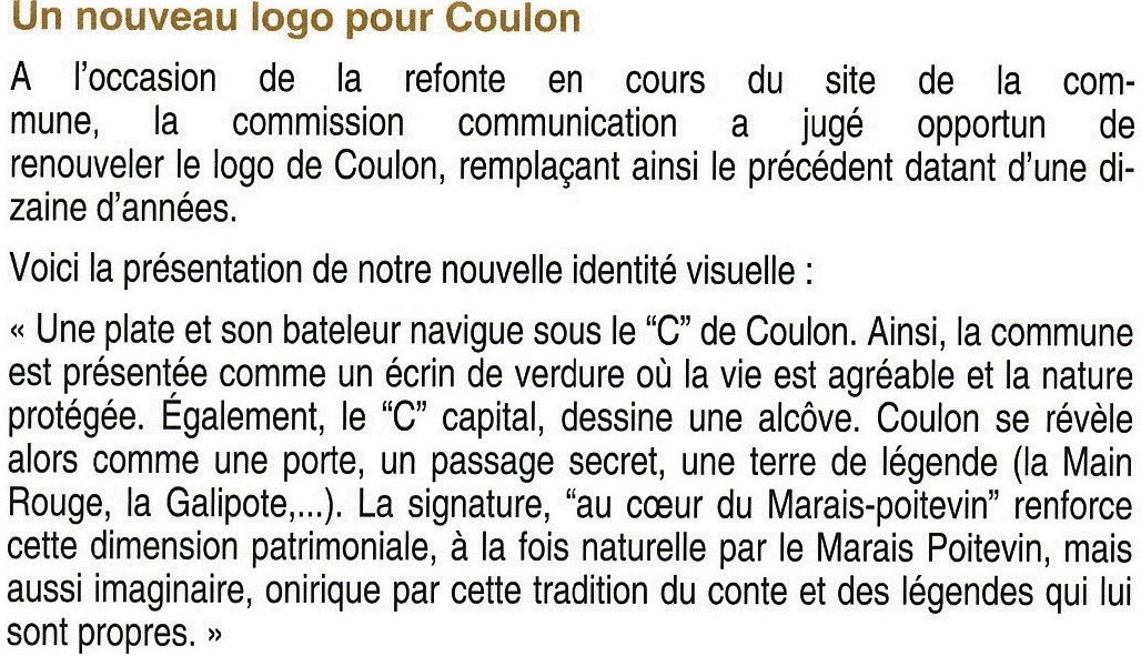 Publié dans le magazine municipal 2023 de Coulon, le texte, en citation non signée, qui accompagne le logo n°4 doit être lu attentivement.